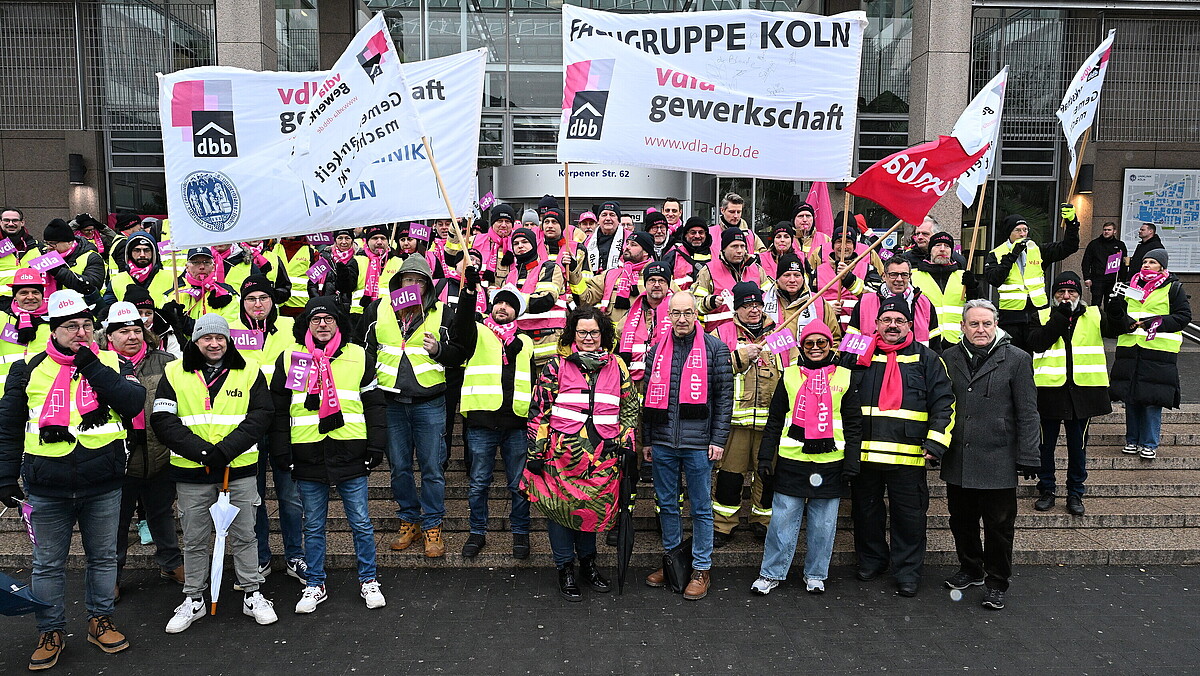 Sandra van Heemskerk, stellvertretende Vorsitzende der Bundestarifkommission und Bundesvorsitzende der komba, betonte die außergewöhnlichen Belastungen der Beschäftigten im Gesundheitswesen: „Eure Arbeit ist unverzichtbar – und ihr habt das Recht auf faire Einkommen, verlässliche Arbeitszeiten, angemessene Zeitzuschläge und sichere Perspektiven.“ Vor zahlreichen Kolleginnen und Kollegen, die am 3. Februar 2026 dem Warnstreikaufruf in Köln gefolgt waren und den Arbeitgebenden der Länder unmissverständlich deutlich machten, dass auch die Beschäftigten der Universitätskliniken in der Einkommensrunde 2025/26 konkrete und spürbare Verbesserungen erwarten, fügte sie hinzu: „Das sind keine ‚netten‘ Extras, sondern Voraussetzung dafür, dass die Daseinsfürsorge dauerhaft gewährleistet werden kann. Deshalb fordern wir: 7 Prozent mehr Einkommen, mindestens 300 Euro monatlich, sowie eine Anhebung der Zeitzuschläge um 20 Prozentpunkte und eine Tariflaufzeit von 12 Monaten. Im Wettbewerb um Fachkräfte, können sich die Arbeitgeber keine weiteren Rückschritte leisten!“